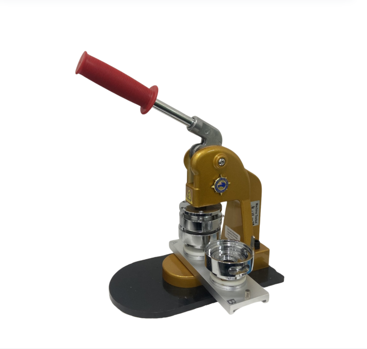 Press custom designs into metal or plastic badges, often used for events, branding, or crafts.
